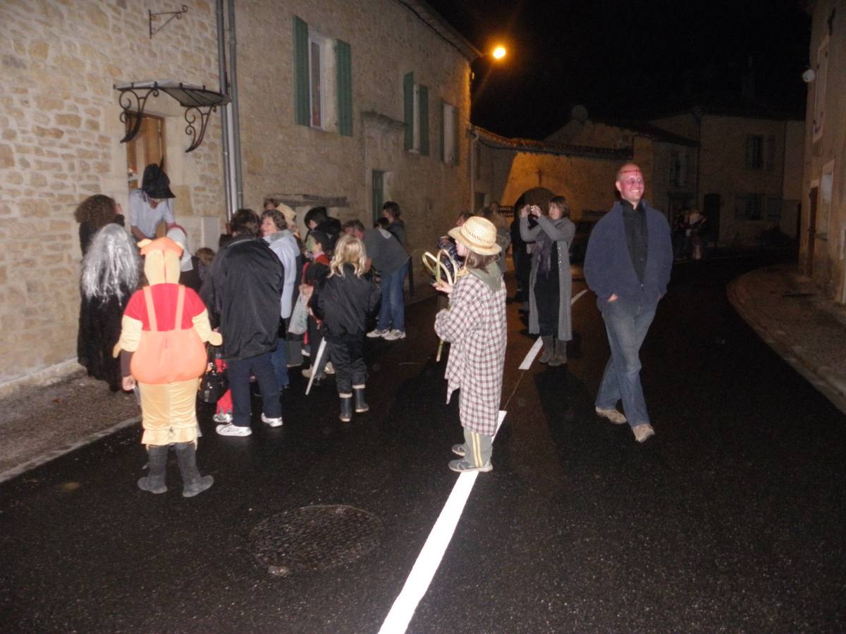 Les enfants déguisés, vont chercher des bonbons dans le village. Il faut trouver les maisons qui se sont signalées par une bougie allumée. Beau charivari dans les rues du bourg. Bonne participation des habitants. Et bonne soirée.